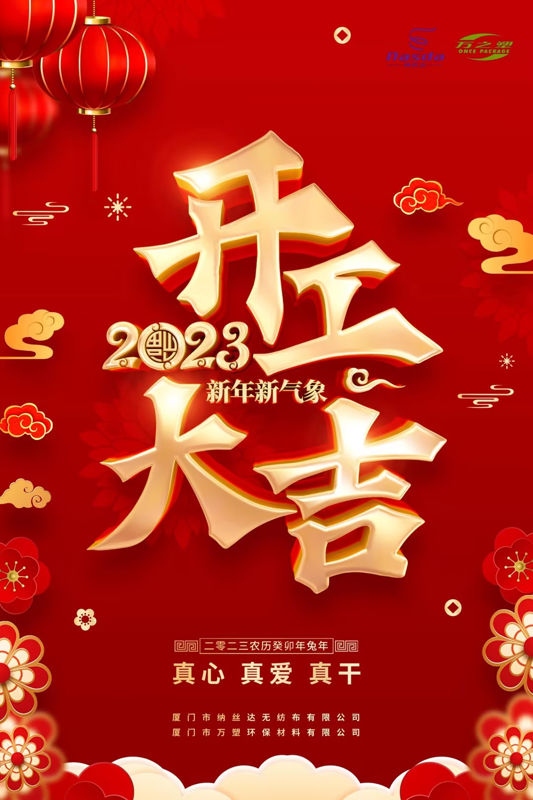 開工大吉廈門市納絲達無紡布有限公司 2023-01-29 21:13 發表于福建鞭炮一響,黃金萬兩。2023年1月28日,廈門市納絲達無紡布有限公司與旗下子公司萬塑環保正式開工,全體員工在幸福食堂參加開工儀... -